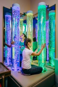 Спокойная музыка, зрительный и тактильный контакт со световым и фибероптическим оборудованием, мягкая мебель создают эмоционально позитивную атмосферу, комфорт, радость у детей, стимулируют познавательный интерес, способствуют снижению психоэмоционального напряжения.