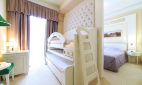 Просторный двухкомнатный номер с видом на парк, состоящий из спальни с удобной двуспальной кроватью и детской с двухъярусной кроватью. Номер оснащен современной мебелью и техникой, мини-сейфом и доступом в интернет. Санузел оборудован современной сантехникой, феном, туалетными принадлежностями.